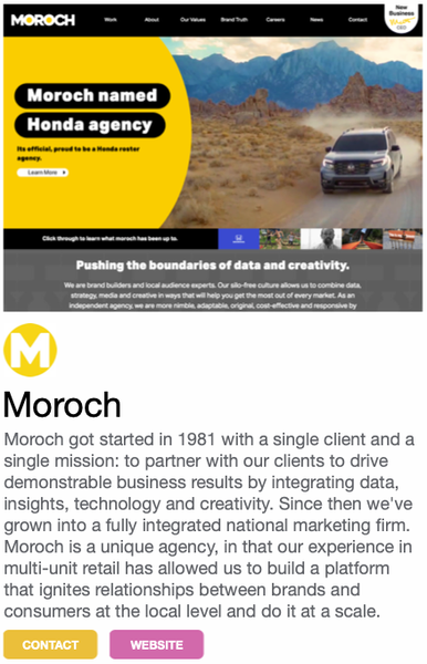 Brad is the Executive Creative Director of Moroch, an advertising agency of 324 employees (according to Linked In) based in Dallas, Texas.