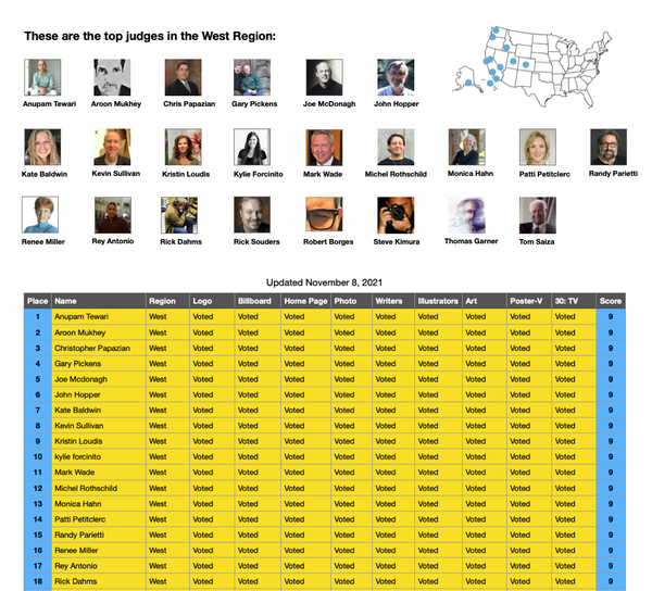 AABSA rewards our judges (you!) for participating and for having the best creative eye. Check out our Regional Leader Boards for the top 100 judges in each region.