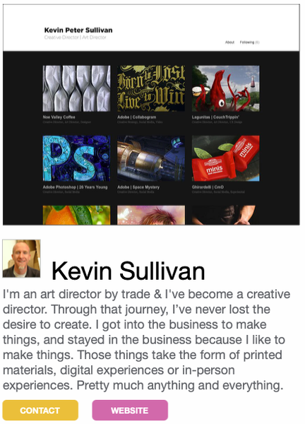 In San Francisco, Cutwater has asked for a profile. As a result, they are not only seen by our wide group of members, but their portfolio work is eligible to compete in our creative categories. All profiles are free – just ask to be included.
