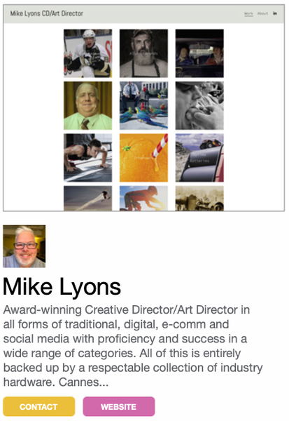 Once an individual professional such as Mike has a profile, they may show their best work and compete in our Copywriter, Art Director, Photographer and Illustrator contests.