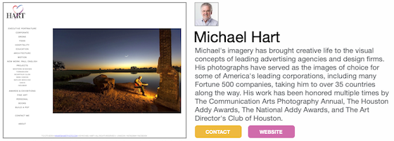 This profile for Michael Hart appears in the Houston Photographers Showcase. Click below to access the Showcase.