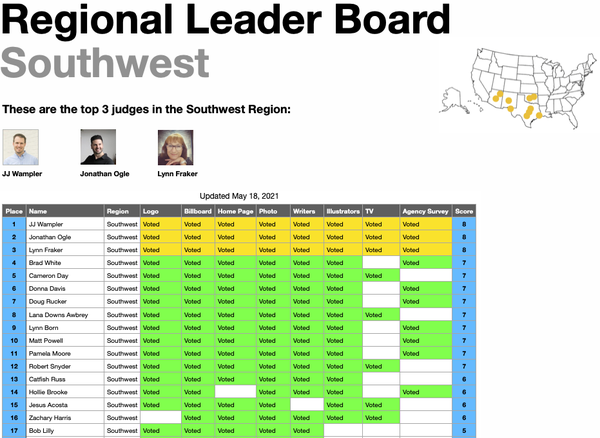 , To include more of our judges, I have included the top 100. You should find yourself in there.